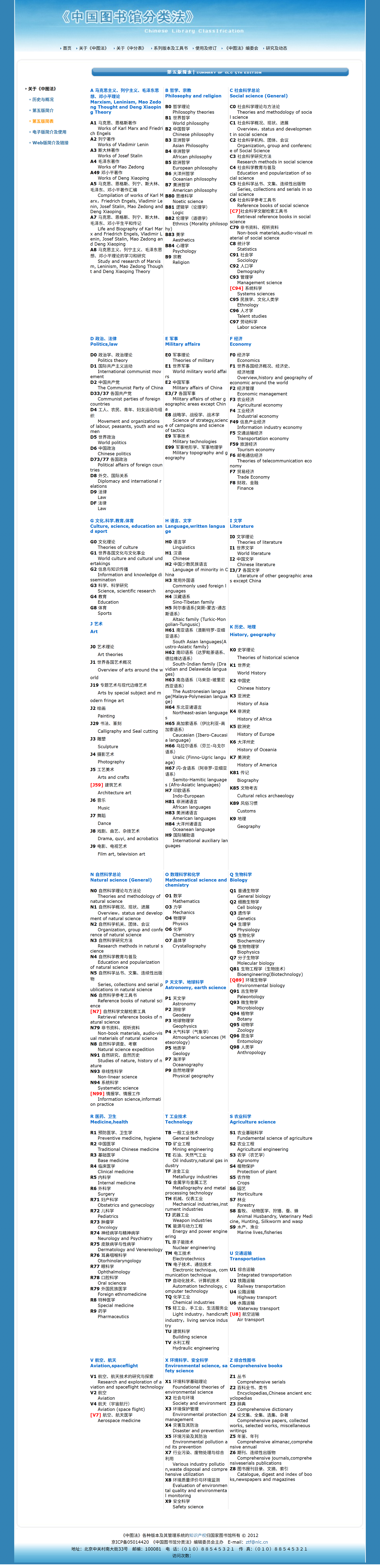 - 《中国图书馆分类法》附加的《ZT 通用概念》和《ZY 附表》数据来源于 汉语主题词表服务系统