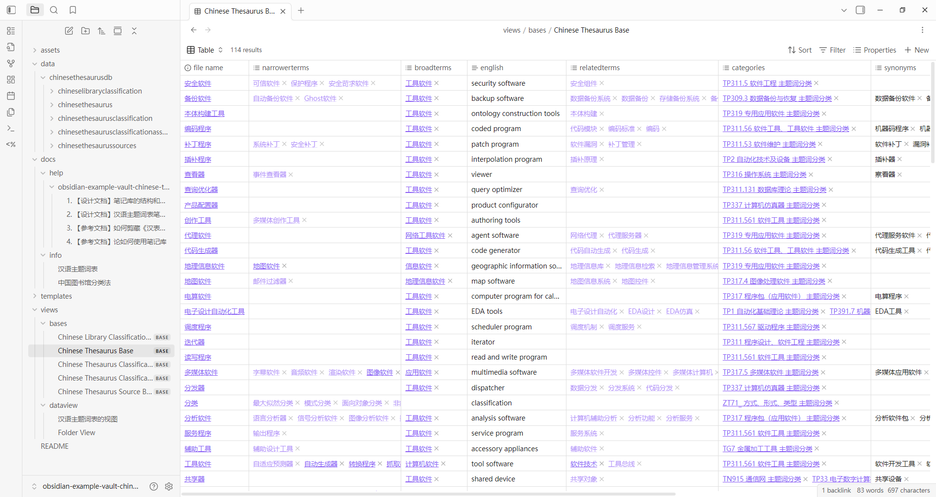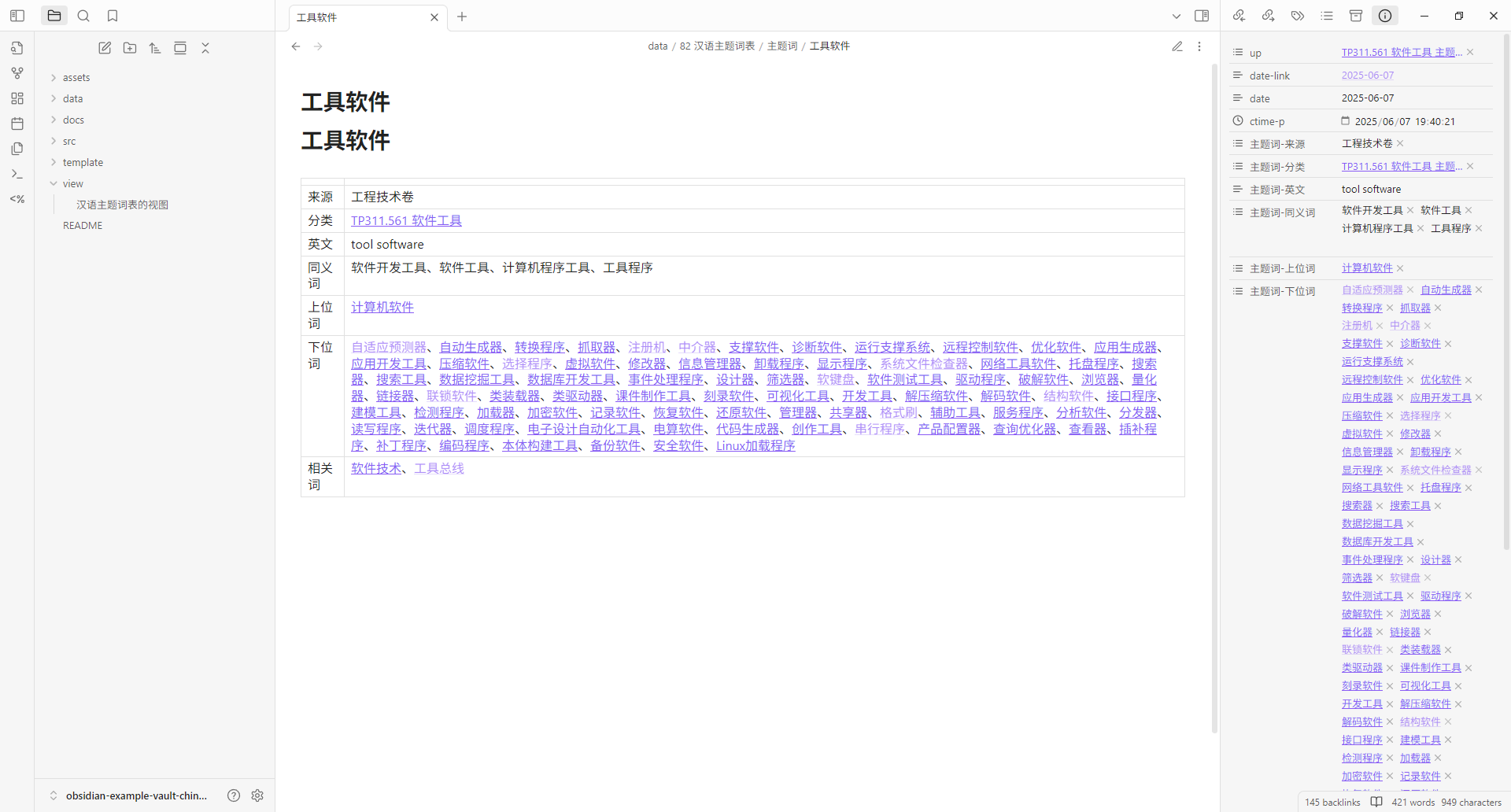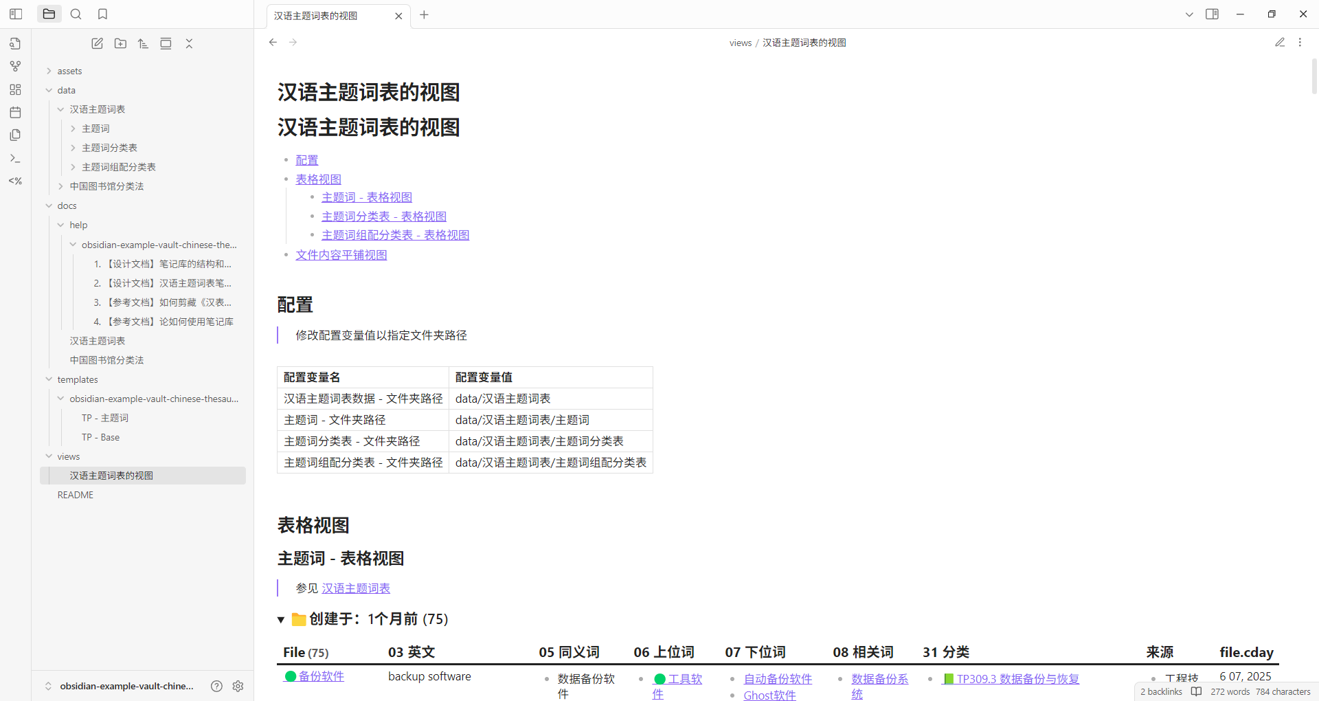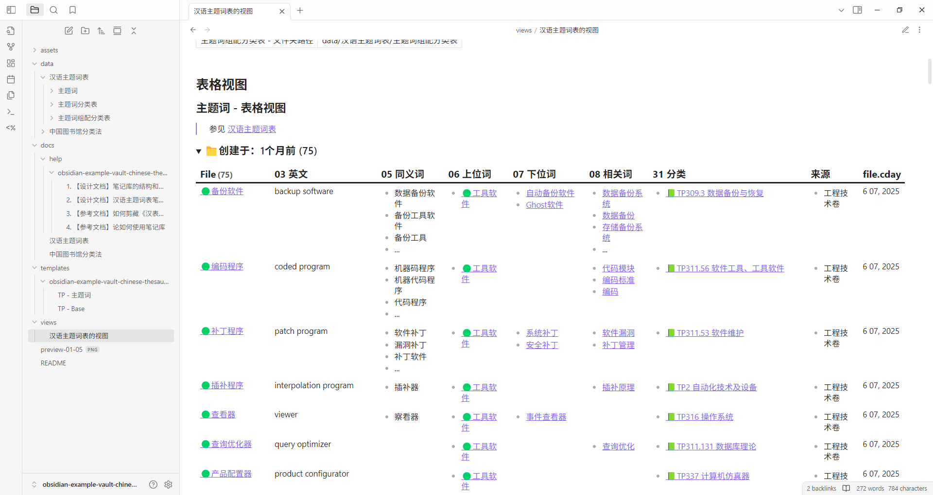 这是一个 Obisidian 示例库,用于存储和可视化显示 《汉语主题词表》 的主题词